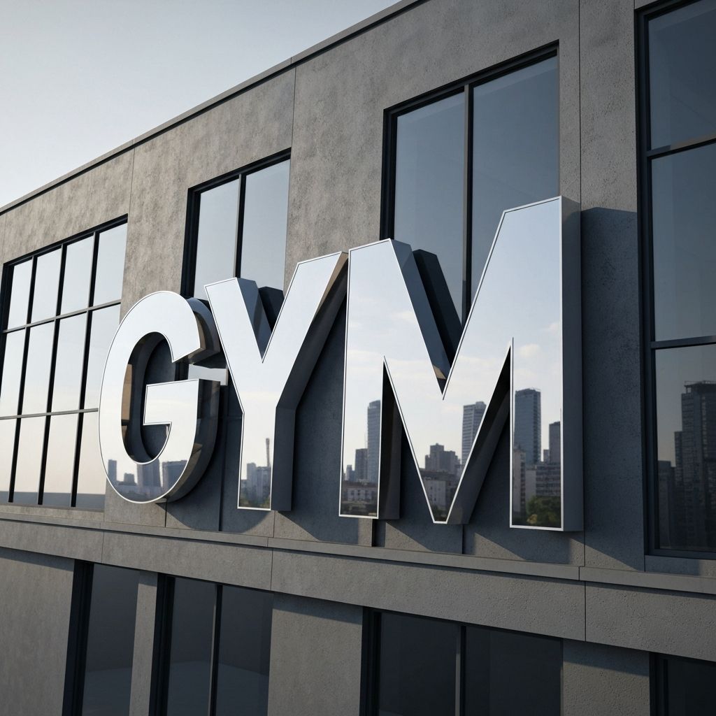 Letras 3D en aluminio con iluminación LED para fachada de gimnasio. Montaje estructural resistente y acabados premium.
