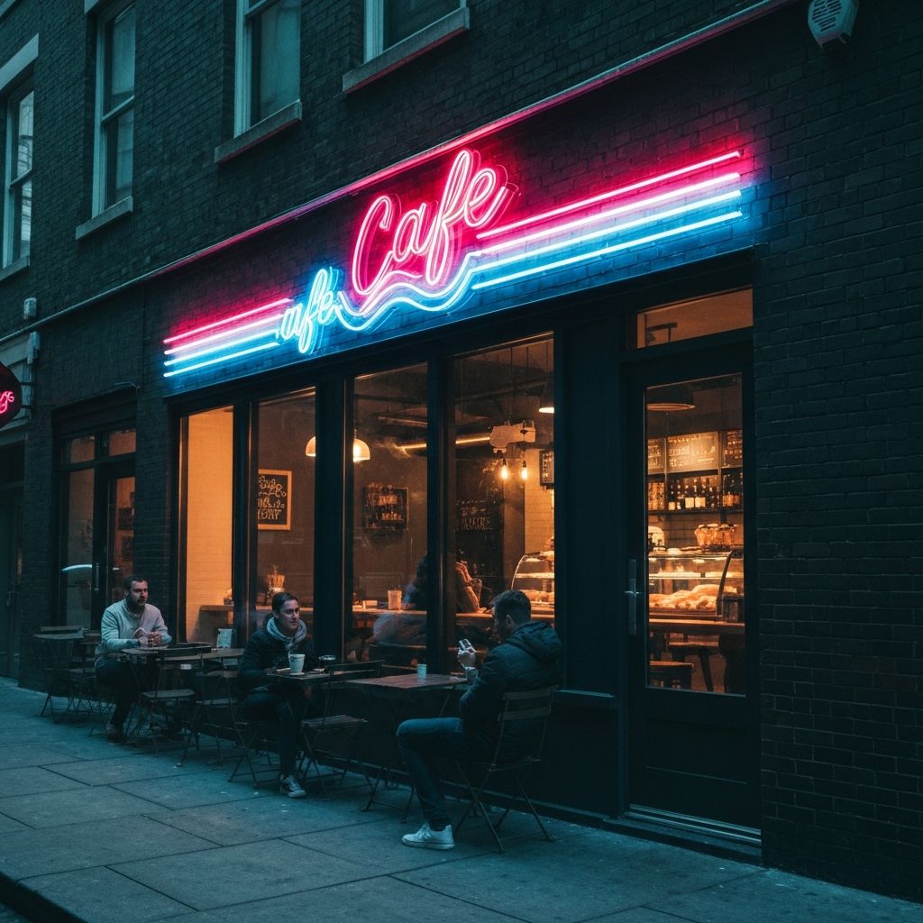 Letrero en neón flex personalizado para cafetería moderna. Iluminación LED de alta eficiencia con diseño tipográfico elegante.