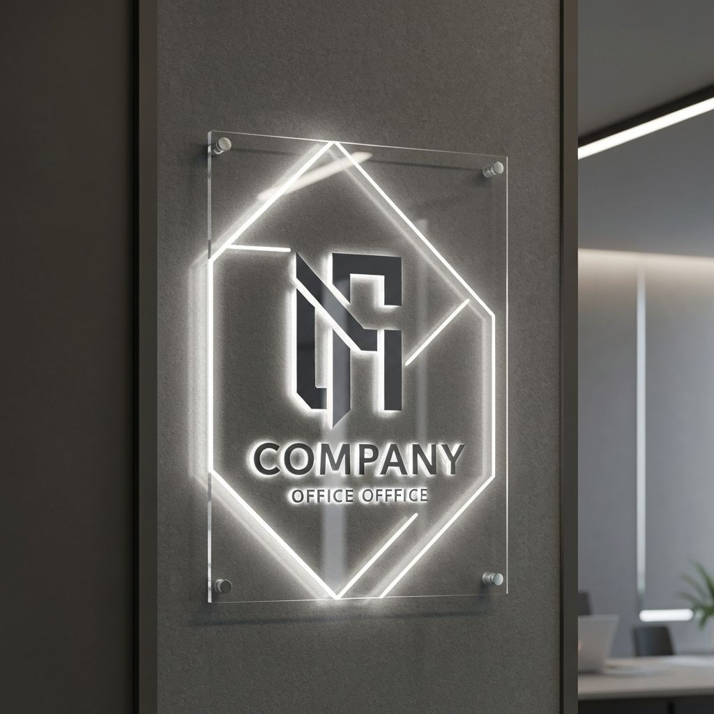 Sistema de señalética interior en acrílico y vinil adhesivo. Diseño corporativo elegante con acabados arquitectónicos.